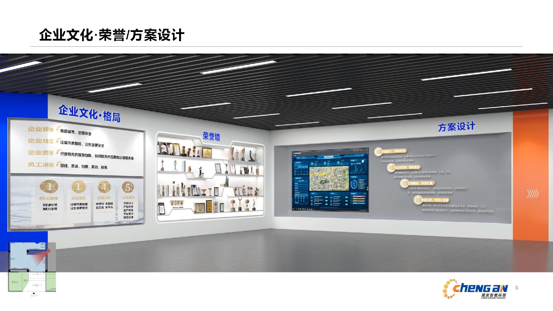 風格要求:1、展廳空間:科技感、時尚、簡約、大氣符合企業屬性特征;2、辦公空間:簡約大方,控制成本,充分利用現有辦公家具和設施。