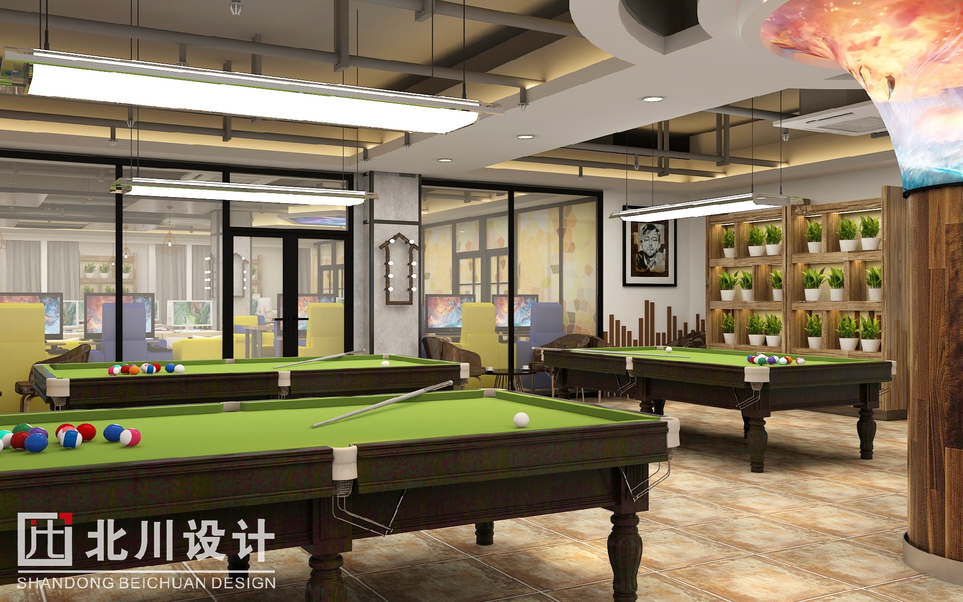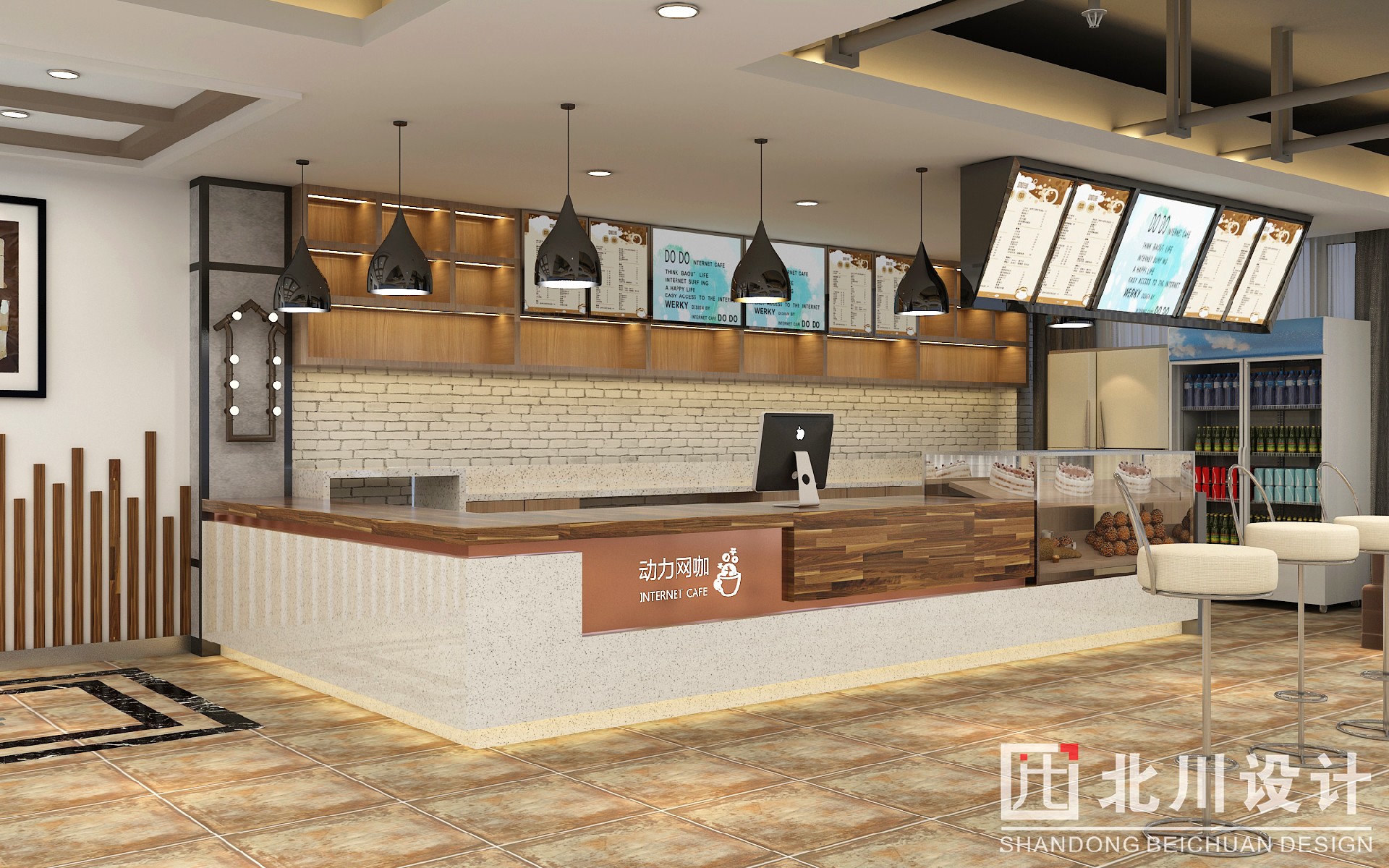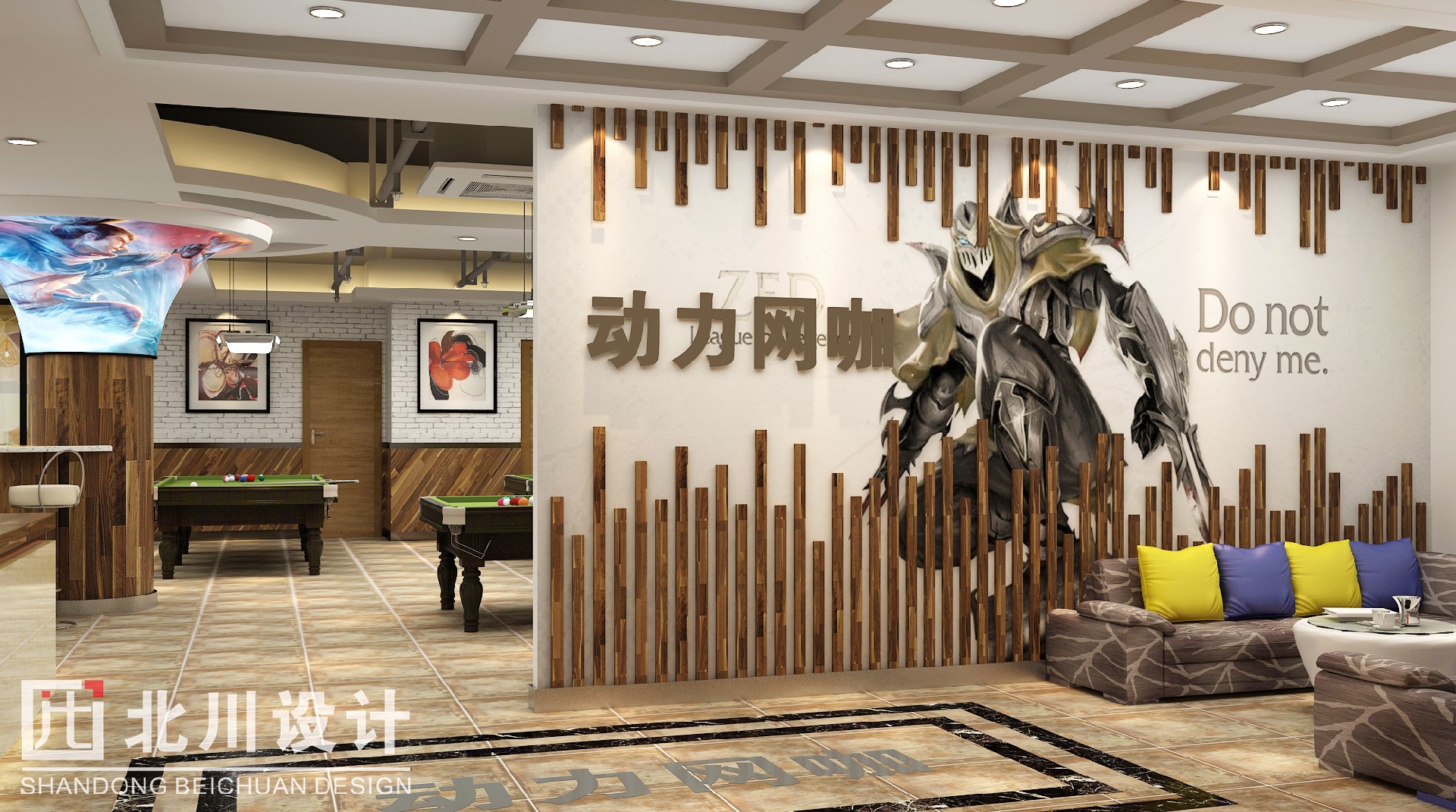 上網(wǎng)綜合大廳為玩游戲、看電影、網(wǎng)聊的玩家專屬區(qū)域,體現(xiàn)干凈整潔,時尚前衛(wèi),與吧臺的設(shè)計互相呼應(yīng)。