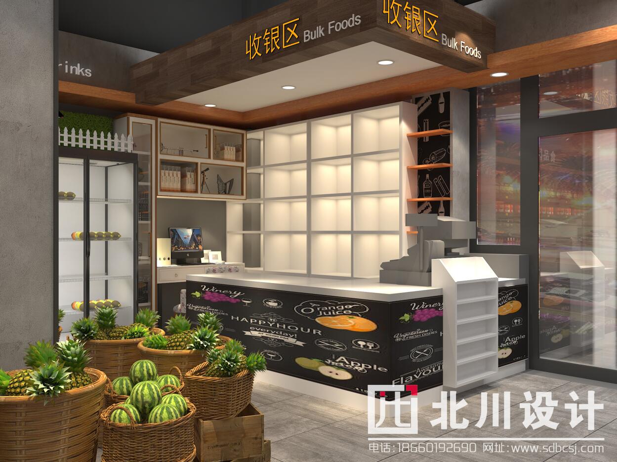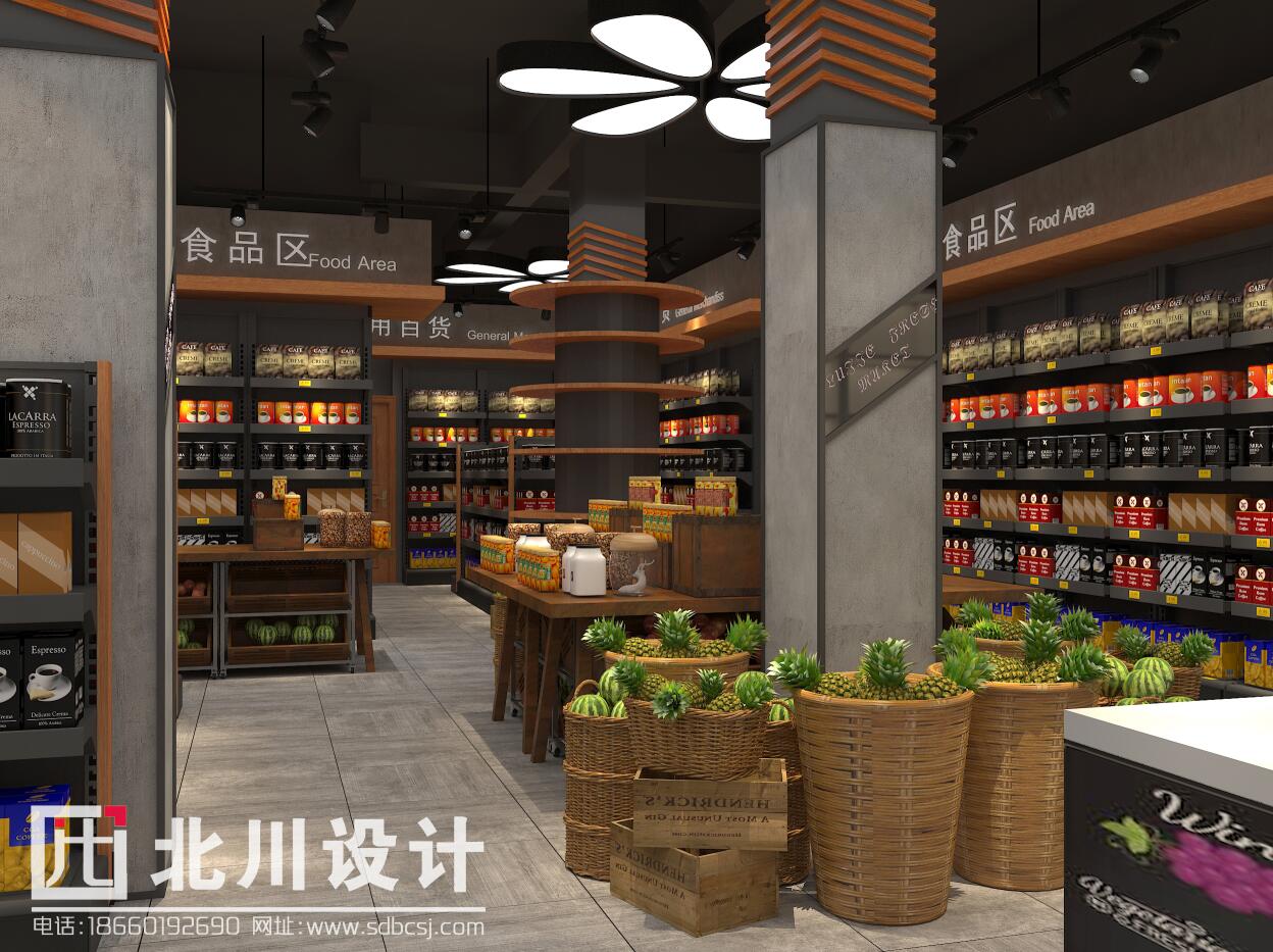 本案超市項(xiàng)目位于山東省鄆城縣,帝景灣小區(qū),周邊小區(qū)居民較多且小區(qū)周圍有幾年夫妻便利店面積大小均未超過100平方米店且沒有精品超市,周邊商業(yè)環(huán)境較好。綜合考慮購物中心物業(yè)對本項(xiàng)目環(huán)境定位較高,周邊客源較多,故項(xiàng)目裝修設(shè)計(jì)定位為:精品超市。